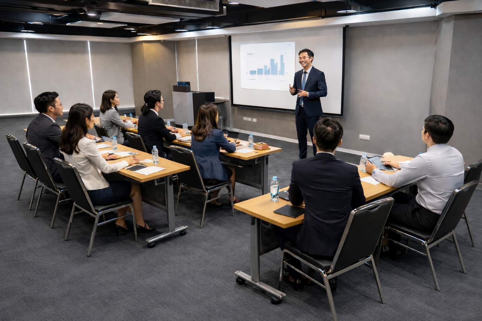 - 授課地點在實體教室(AI 示意圖)。